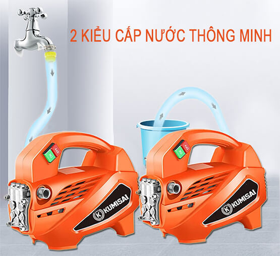 Máy rửa xe gia đình Kumisai KMS 1600. Công suất 2.5 kW, Áp lực làm việc: 150 Bar. Lấy nước không cần mồi. Tự động ngắt (Khi nhả cò). BH 12 tháng