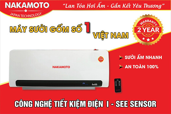 – Nakamoto NK09 sử dụng công nghệ tiết kiệm điện I – See Sensor, tiết kiệm đến 50% so với máy sưởi và đèn sưởi thông thường.