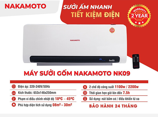 Sản phẩm máy sưởi gốm NAKAMOTO NK09 có chế độ bảo hành lên tới 2 năm (gấp đôi so với chế độ bảo hành của một số dòng máy sưởi gốm có trên thị trường).