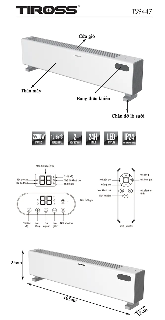 | Tên SP | Máy sưởi sàn trong nhà Tiross TS9447 |
