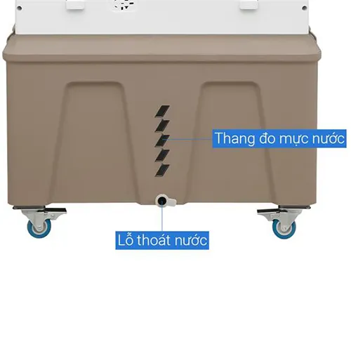 Tiện ích (hẹn giờ tắt, có hiển thị mực nước…) | – Tạo i-on lọc không khí – Cảm biến chất lượng môi trường (option ) – Điều khiển từ xa – Cảnh báo cạn nước – Hẹn giờ tắt – Có màn hình hiển thị – Có thang hiển thị mực nước – Đảo gió tự động 2 chiều trái – phải – Thùng nước tháo rời – Hộp đá khô làm mát – Bánh xe di chuyển |