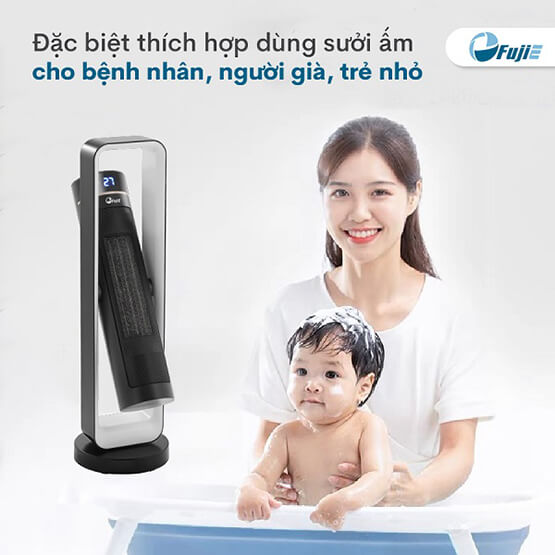 – Quạt sưởi gốm Ceramic để sàn FujiE CH-2400, diện tích sưởi ấm lý tưởng từ 15 – 20m2, ấm dịu nhẹ, an toàn cho cả người già và trẻ nhỏ