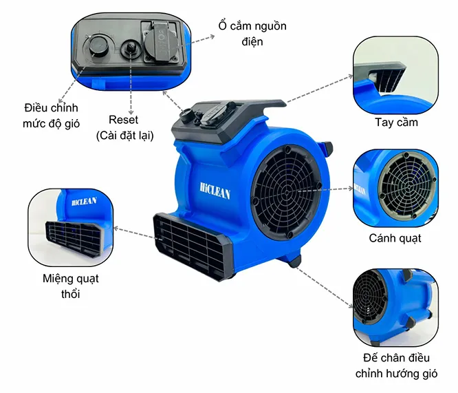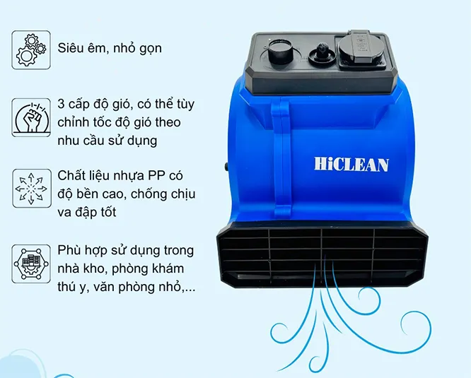 Quạt thổi sàn mini HiClean HC538 giúp loại bỏ bụi bẩn và cặn bẩn khỏi các khe hẹp, những nơi mà bạn không thể dễ dàng đến được bằng các phương tiện khác. Với lưu lượng gió lên đến 16m3/phút, quạt thổi sàn này có thể làm sạch sàn nhà hoặc sàn nhà kho một cách nhanh chóng và hiệu quả. Điều này đặc biệt hữu ích trong những không gian bụi bẩn hoặc khi bạn cần làm sạch những khu vực khó tiếp cận.
