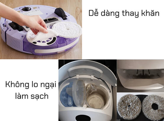 – Tự động quay về sạc điện, trạm sạc thiết kế thông minh khi robot còn 20% pin