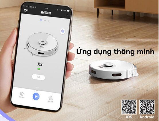 INXNI X3 phiên bản Quốc tế kết nối app trên hệ điều hành Androin và IOS giúp người dùng dễ dàng điều chỉnh các tính năng thônng minh như: Thiết lập tường ảo, tăng mực nước, tăng lực hút, hay hẹn giờ làm việc, điều khiển từ xa…..