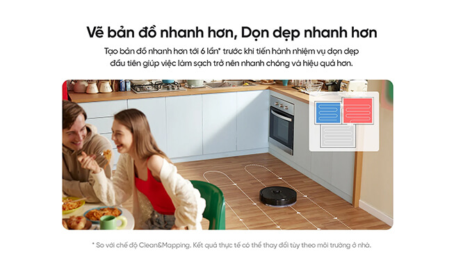 Robot có thể tạo một bản đồ nhanh gấp 6 lần trước khi tiến hành nhiệm vụ dọn dẹp đầu tiên, giúp việc dọn dẹp hàng ngày trở nên hiệu quả và nhanh chóng.