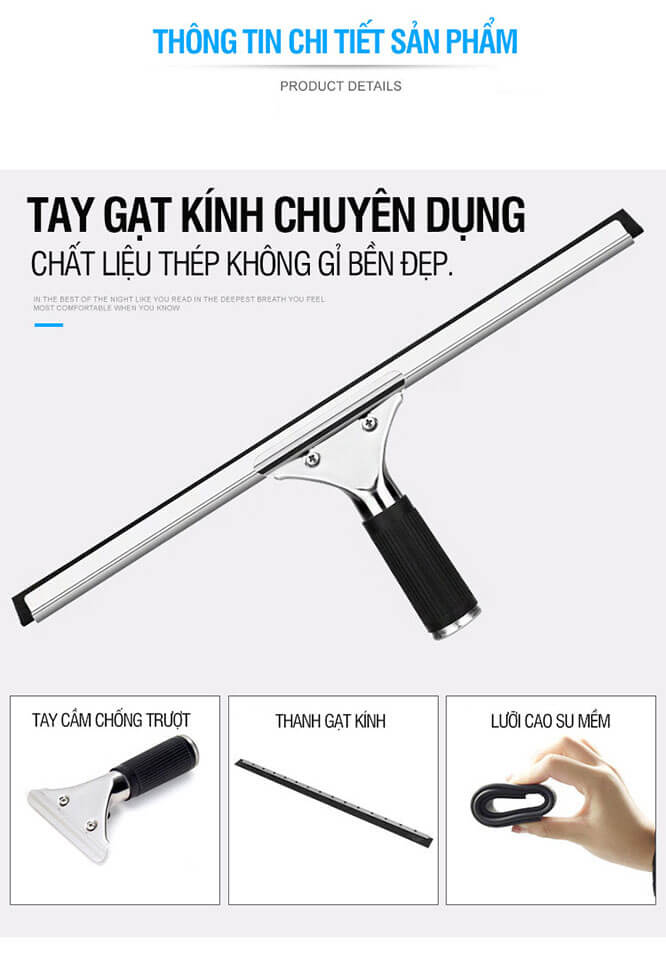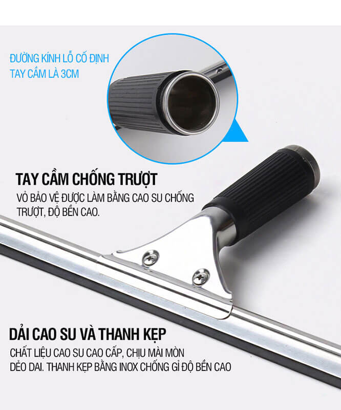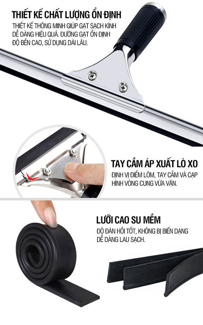 | Chất liệu | Thanh gạt kính: thép không gỉ Lưỡi gạt kính: Cao su Tay cầm: Inox được bọc nhựa |