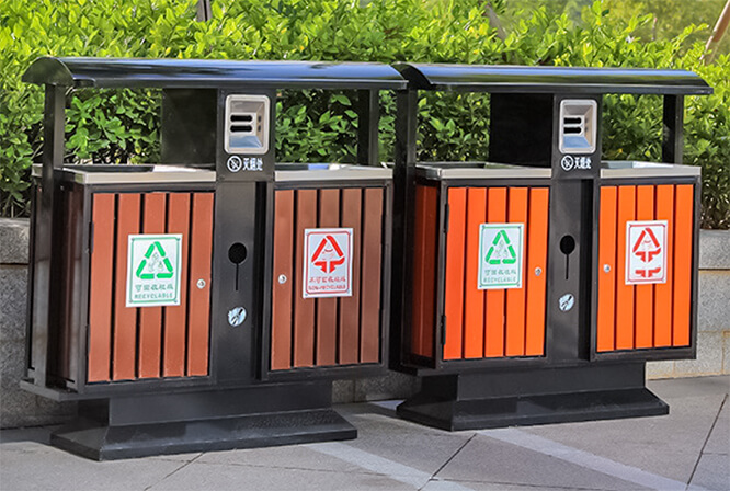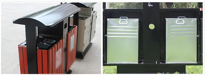 Thùng rác ngoài trời 2 ngăn. Thích hợp đặt ở khu vui chơi giả trí, trung tâm thương mại, công viên, khu đô thị, chung cư, khuôn viên nhà máy, hoặc nơi công cộng.