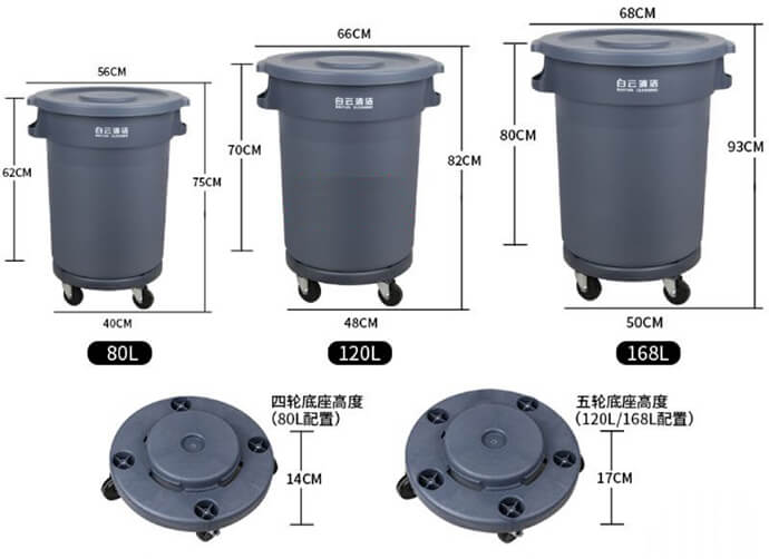 Thùng rác nhựa tròn dùng cho nhà bếp (80L – 120L – 168L)