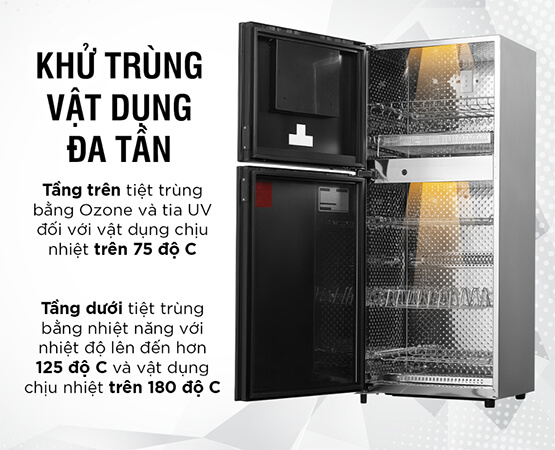 Chức năng điều khiển tự động của máy cho phép bạn khử trùng ngăn trên và ngăn dưới cùng một lúc. Điều này giúp bạn tiết kiệm thời gian và công sức.