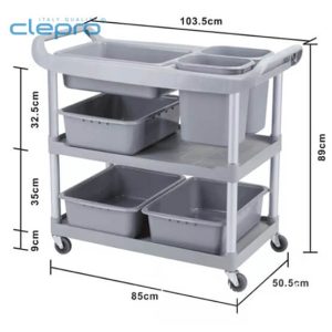 Xe đẩy dọn đồ ăn Clepro CS-3/6 thiết kế gồm 3 tầng dùng để đựng đồ ăn sạch và 2 thùng bên hông để đựng đồ ăn dư thừa hoặc có thể sử dụng linh hoạt theo mục đích của người dùng.