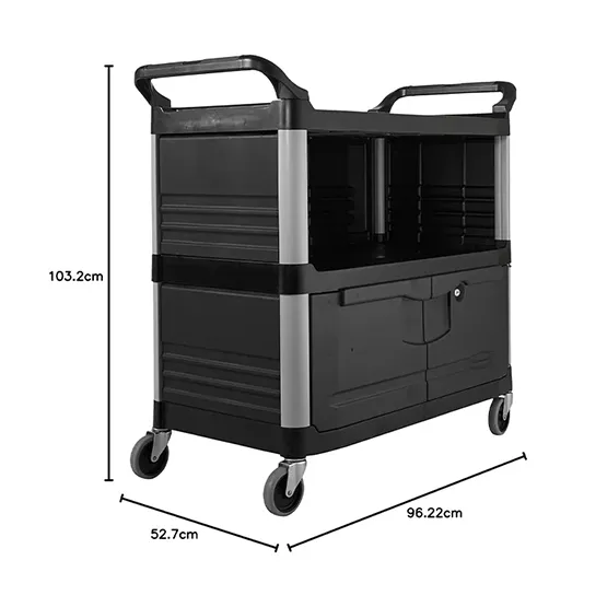 Xe đẩy phục vụ 2 tầng có vách kín và tủ của Rubbermaiddòng Xtra™ với thiết kế 2 tầng kèm tủ có khóa và vách kín. Xe đẩy phục vụ này là lựa chọn hoàn hảo cho việc lưu trữ và vận chuyển trong nhiều môi trường khác nhau như nhà hàng, khách sạn, văn phòng hoặc bệnh viện. Xe đẩy hàng mang lại sự tiện lợi, đảm bảo an toàn và nâng cao hiệu quả công việc.