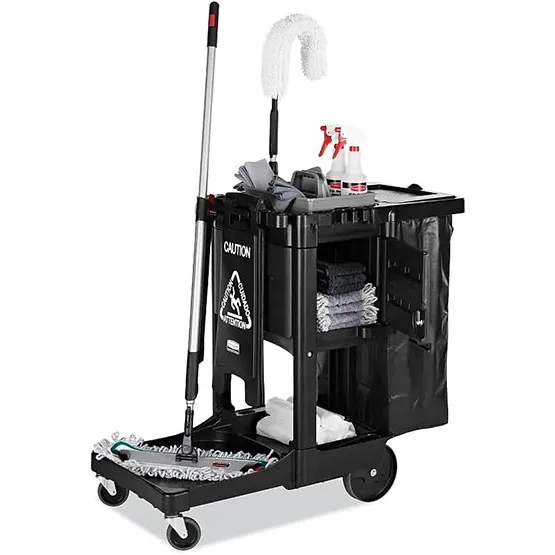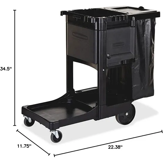 – Rubbermaid® 1861430: Thiết kế 3 kệ rộng rãi, cho phép sắp xếp và mang đi nhiều dụng cụ vệ sinh cùng lúc.