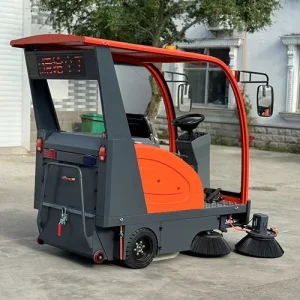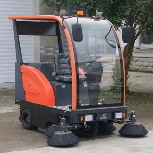 – Xe quét dọn rác ngồi lái có thiết kế khoang lái có mái che siêu tiện dụng, tránh nắng mưa tốt. Xe được điều khiển bằng vô lăng như ở xe ô tô, kết hợp cùng các cần, nút ấn có nhãn chức năng dễ dàng.