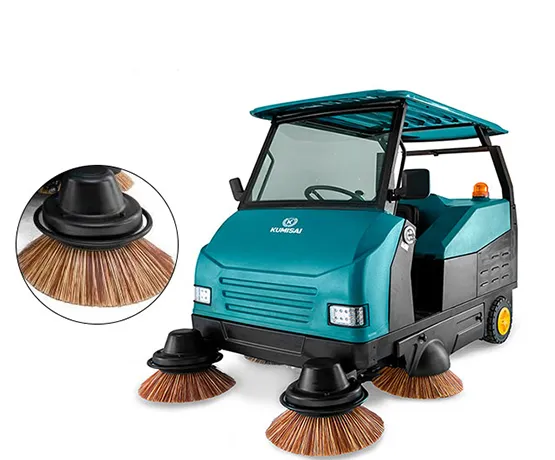 – Chổi quét: Kumisai KMS 77 được thiết kế hệ thống 4 chổi quét phía trước, với đường kính 800mm, 1 chổi chính phía sau độ rộng 800mm; đảm bảo khả năng dọn sạch rác trên những bề mặt mà máy đi qua.