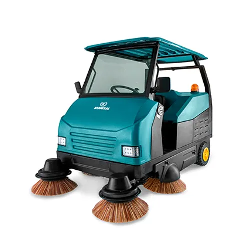 Xe quét rác ngồi lái Kumisai KMS 77. Hiệu suất làm việc: 12000 m2/h, sử dụng Ắc quy điện áp: 48V (6 pin 8V). Thời gian làm việc liên tục 6-8h. Bình chứa 180L/50L