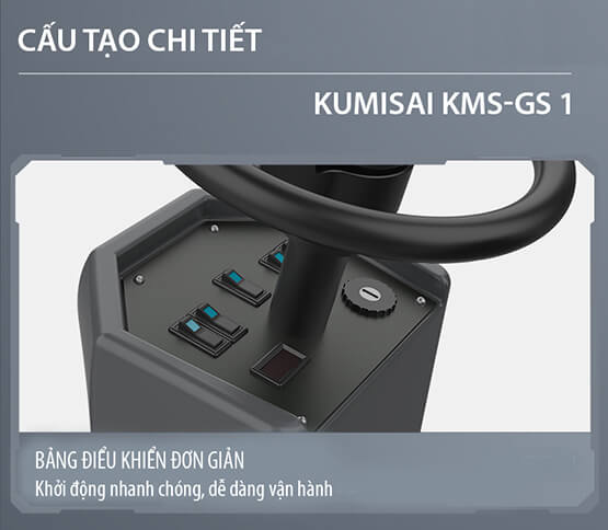 Model KMS-GS1 sở hữu bảng điều khiển đơn giản giúp người dùng khởi động nhanh chóng, vận hành dễ dàng. Vô lăng và ghế ngồi của máy được thiết kế vừa tầm, cấu thành từ vật liệu cao cấp, tạo sự thoải mái cho người dùng khi phải làm việc trong thời gian dài.