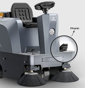 Máy quét rác ngồi lái Kumisai KMS-S4 còn sở hữu hệ thống phanh đĩa thủy lực cùng 3 bánh xe cao su, đảm bảo an toàn cho thiết bị khi lên xuống dốc, đồng thời ngăn ngừa xe bị trơn trượt và mất khả năng kiểm soát, giúp người dùng yên tâm hơn khi làm việc với thiết bị.