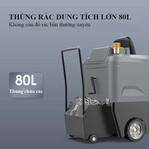 – Thùng chứa rác có dung tích 80 lít, khả năng đựng được một lượng rác lớn giúp xe hoạt động liên tục trong một không gian lớn mà không phải gián đoạn đổ rác quá nhiều lần