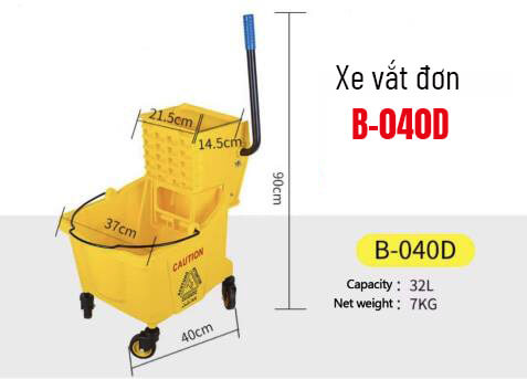 Xe vắt đơn B-040D (32 lít). Giỏ vắt hiện đại, thông minh, điều hướng 360 độ, nhựa ABS cao cấp, độ bền cao, chịu lực tốt, chống va đập hiệu quả.